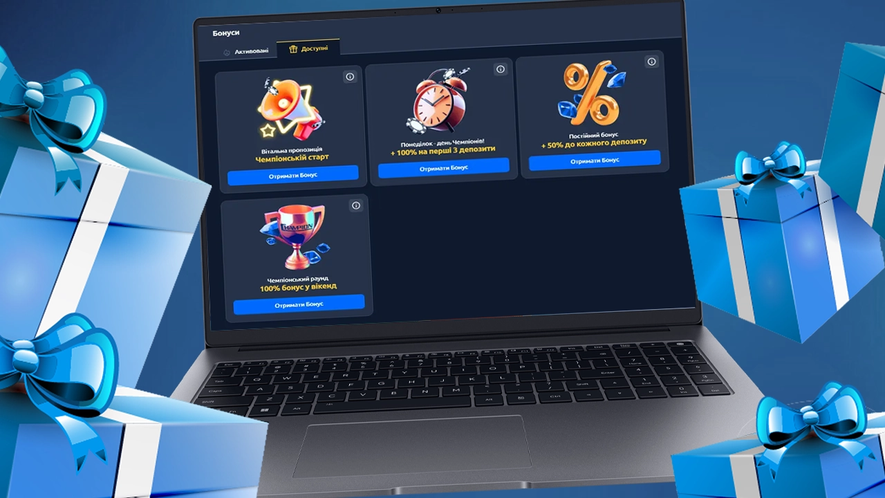 Бонуси в нашому українському казино Чемпіон Клуб — це різноманітні акції, які дозволяють гравцям отримати додаткові кошти або вигоди без необхідності вкладу, включаючи верифікаційний бонус та персональні пропозиції для активних користувачів.